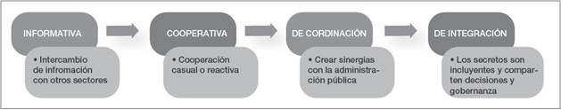 Relaciones: las relaciones entre los sectores deben ser lo suficientemente fuertes para emprender y sostener las diferentes acciones y estrategias.