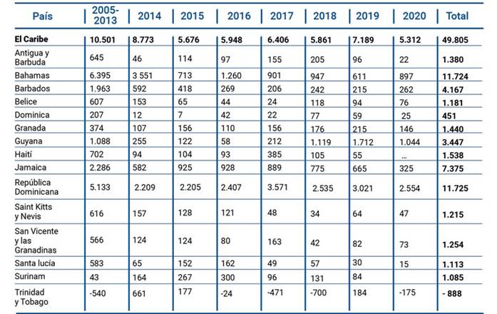 Fuente: elaboración propia a partir de entradas de inversión extranjera directa en países del Caribe. - OCDE (2021).