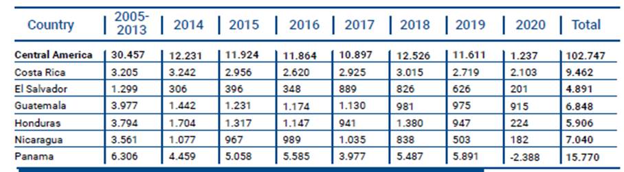Table 5: Foreign direct investment inflows in Central American countries - OECD (In millions of dollars).