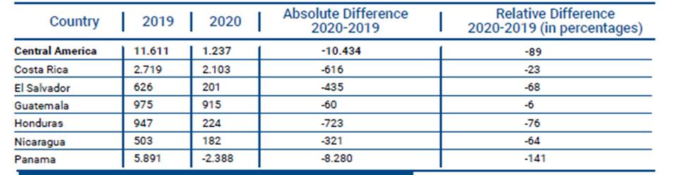 Tabla 6: Relative difference in foreign investment due to COVID in Central American countries- OECD ( in millions of dollars).