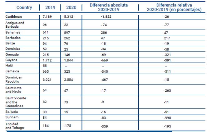 Source: own elaboration based on foreign direct investment inflows in Caribbean countries. - OECD (2021).