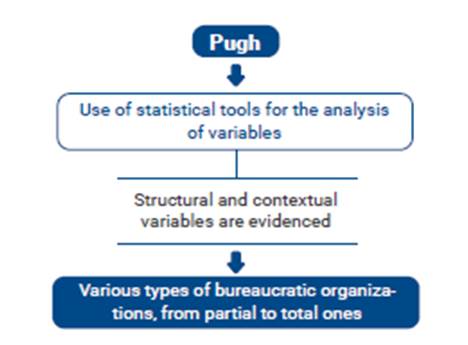 It is necessary to affirm that, for the first time, the focus of study changes from the qualitative to the quantitative idea, the previous movements had based their studies from the analysis of phenomena, but this time they began to give structure to the organization and , therefore, an attempt was made to make it objective, through more specific and rational analyses, from which it is inferred that contingency is the maximum expression of OT Below, in figures 1 to 3, are the contributions of different authors to the Organization Theory: