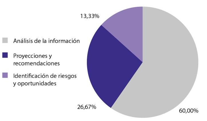En la figura 2 se muestra que, para los empresarios, la principal forma en que los contadores públicos pueden apoyar la toma de decisiones estratégicas es mediante un análisis detallado de la información financiera y los estados contables (60,00%), los cuales sirven de base para la formulación de los objetivos organizacionales. Un 26,67% de los entrevistados espera que el contador establezca proyecciones financieras, evaluando el impacto de distintos escenarios en la viabilidad de proyectos, inversiones o procesos de expansión, acompañados de recomendaciones informadas. Por último, el 13,33% considera que el contador debe identificar riesgos y oportunidades, facilitando el fortalecimiento empresarial y el manejo adecuado de los recursos económicos.