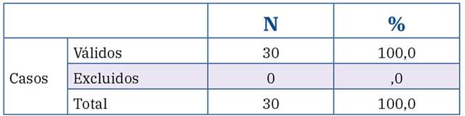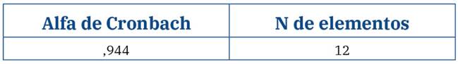 Para validar la confiabilidad del instrumento de investigación se utilizó el alfa de Cronbach, método que mide la fiabilidad mediante la correlación entre los ítems de la escala, evaluando la diferencia entre valores reales y esperados (Toro et al., 2022). Las tablas 2y 3 muestran el cálculo que se realizó en cuanto la fiabilidad de la encuesta piloto, de 12 ítems, realizada con 30 académicos. Como puede verse, el valor del alfa de Cronbach fue de ,944, lo que significa, según George y Mallery (2003), que el instrumento aplicado es excelente y se puede aplicar con confiabilidad.