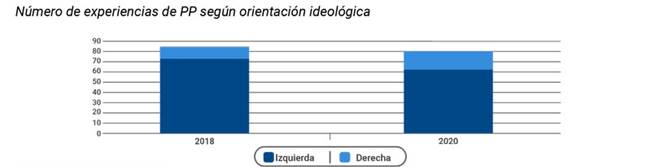 Estos datos confirman que son los partidos de izquierda los que mayoritariamente ponen en marcha experiencias de PP, aunque ya existen partidos de otro sesgo político que lo hacen, aunque minoritariamente.