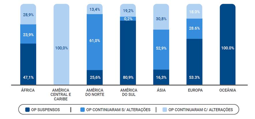 Graph 1 shows the changes produced in the continents with reference to the experiences of participatory budgeting due to the pandemic.