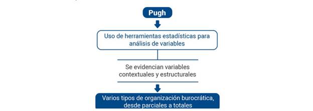 Desde otro punto de vista, encontramos a Mouzelis (1975) quien aporta a la teoría de Weber, aclarando el planteamiento como un ideal y que solo podría ser eficiente desde una visión abstracta, sin posibilidades de verificación por medio de investigaciones y más bien, como modelo de burocracia desde la figura de la organización, alejados de la realidad y el entorno racional. No solo Mouzelis complementó el panorama sobre la teoría de Weber, también encontramos a Merton (2002), quien centra su análisis entre la diferencia del ideal y lo real, basándose en funciones, funciones latentes y disfunciones. Esta última sustentando que toda empresa u organización que se oriente sobre los principios burocráticos de tipo ideal podrá enfrentarse a inconvenientes internos y externo, como los círculos viciosos, despersonalización de las necesidades de los clientes por el trato bajo la misma norma, incapacidad adiestrada, entre otras.