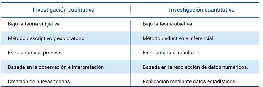 Tabla 1: Diferencias entre la investigación cualitativa y cuantitativa.