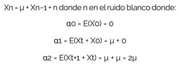 Xn = µ + Xn−1 + ϵn donde ϵn en el ruido blanco donde: