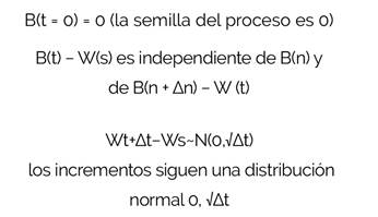 A principios del siglo XX se descubrió que este modelo no solo presentaba beneficios para la física, sino también para diferentes campos del saber, entre ellos las finanzas. Para que un proceso sea browniano, debe cumplir con: