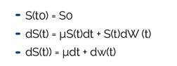 Desde el modelo Black-Scholes-Merton (Merton y Samuelson, 1992) se establece una manera más sensata para esta modelización (en vez de la aritmética que tendía a precios negativos en los resultados de la modelación) para la variable que representa el logaritmo de los precios, definido por la ecuación diferencial estocástica (Oleaga, 2011).