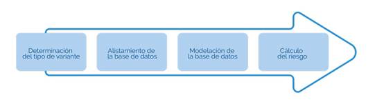 De acuerdo con las etapas de los riesgos (figura 1) que permiten dilucidar la forma de abordar metodológicamente la valoración de los riesgos, se especifica el paso a paso para la determinación de las variables dependientes e independientes según el riesgo y la forma a proceder en el alistamiento de la información para el desarrollo de los cálculos.