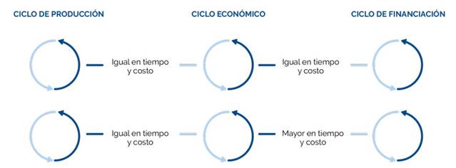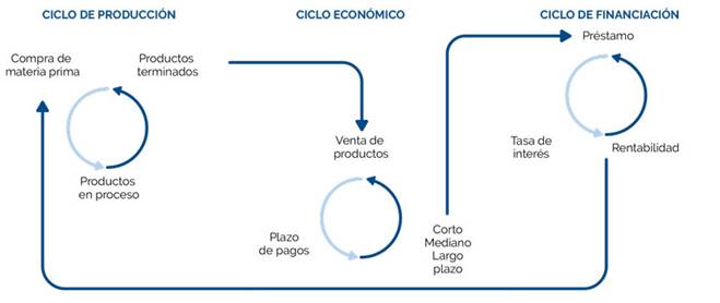 Para la comprensión de la simbiosis (Von, 1969) de los tres ciclos se esboza en la figura 2 y se desarrolla el proceso de los ciclos con su comprensión en la financiación.