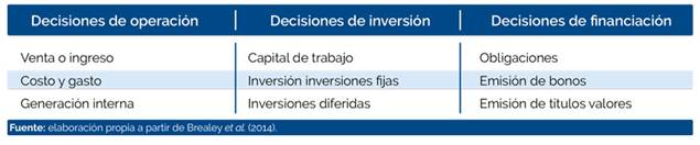 Una vez establecido el tipo de decisiones a realizar, es importante consolidarlo con los diferentes ciclos (producción, económico y de financiación) que tiene la empresa para establecer la cantidad de dinero, el tiempo a usar y el costo financiero (Jiang et al., 2022).