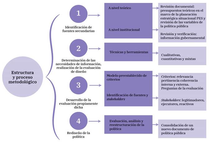 Para la evaluación de diseño, se toma en cuenta la estructura y el proceso metodológico que consta de cuatro momentos: