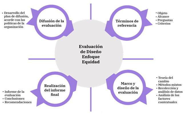 Según este modelo de evaluación centrado en la equidad se consideran para la evaluación de diseño los siguientes elementos: