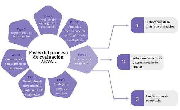 Se considera también una fase III. Diseño de la evaluación. En esta etapa se materializa la metodología y se desarrollan elementos esenciales de la evaluación tales como: a) La elaboración de la matriz de evaluación, conformada por las preguntas, criterios de evaluación y fuentes de verificación. Las preguntas tienen como propósito explorar diversos elementos del diseño. Los criterios son elementos que permiten emitir juicios valorativos sobre la formulación de la política pública. Las fuentes de verificación son herramientas o recursos que permiten la realización del análisis. b) Selección de técnicas y herramientas de análisis que abarcan técnicas tanto cuantitativas como cualitativas e incluso mixtas. c) Los términos de referencia que se componen de un conjunto de directrices que incluyen el objeto, ámbito, alcance y propósito de la evaluación, enfoque metodológico, matriz de preguntas, criterios y fuentes de verificación, equipo evaluador, estructura y presentación de los informes de evaluación, entre otros elementos.