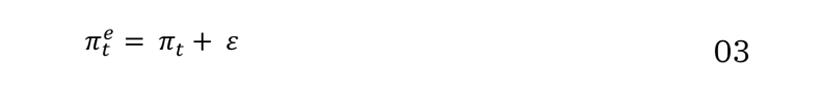 Aquí, β0 representa el valor promedio constante a largo plazo del tipo de interés real esperado, y puede considerarse como una estimación de la tasa de interés real de equilibrio, siempre que β1 =1. Por su parte β1 es el parámetro de inflación, de modo que representa la forma como responde el tipo de interés nominal frente a cambios en la inflación esperada. No obstante, considerando el supuesto de expectativas racionales (Badillo Amador et al., 2010; Bajo-Rubio y Esteve, 1998), se plantea un contexto de información total, asumiendo que los agentes tienen conocimiento completo de la información disponible para pronosticar sus expectativas de inflación; por lo tanto, la inflación esperada se explica como la inflación observada πt, más un término de error aleatorio ε, de tal forma que cumple la siguiente forma funcional: